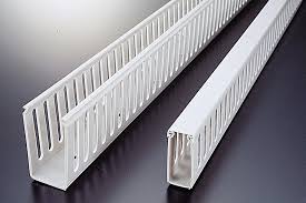 Canaletas plásticas:Facilita y resuelve todos los problemas de conducción y distribución de cables. Se utilizan para fijación a paredes, chasis y paneles, vertical y horizontalmente.Los canales, en toda su longitud, están provistas de líneas de pre ruptura dispuestas en la base para facilitar el corte de un segmento de la pared para su acoplamiento con otras canales formando T, L, salida de cables, etc.